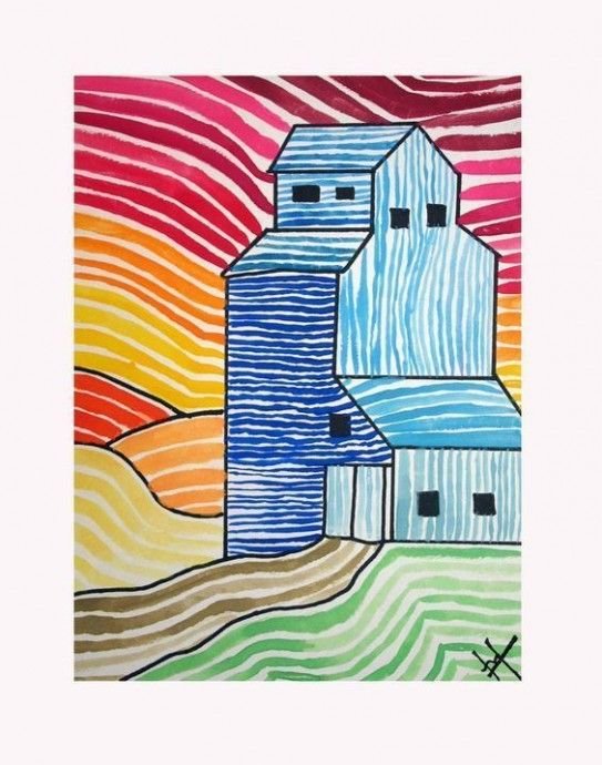 ![Пейзаж цветными линиями]()
