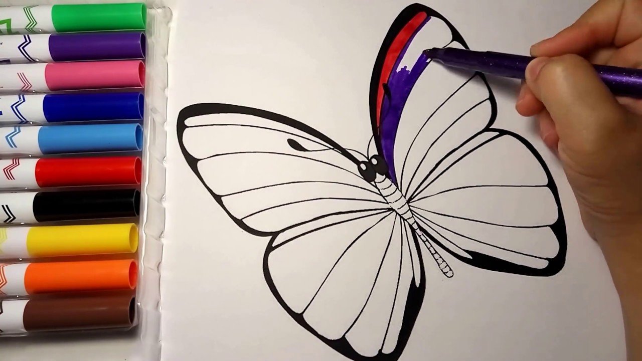 Как раскрасить бабочку фломастерами