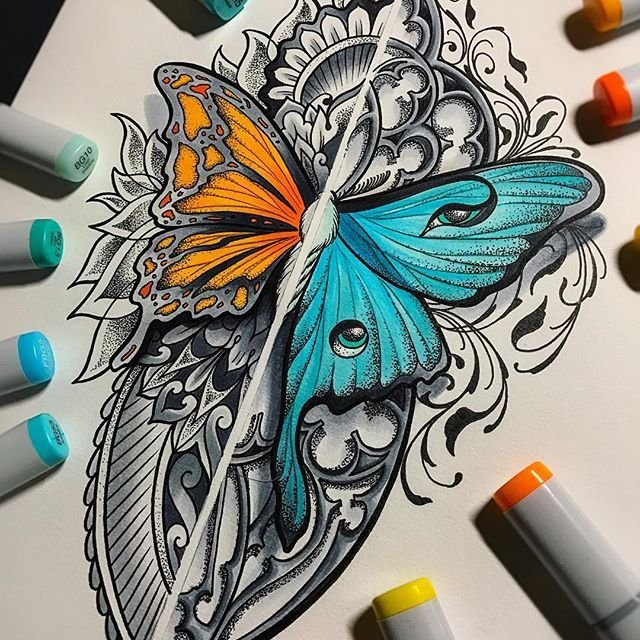 ![Бабочка скетч маркерами]()