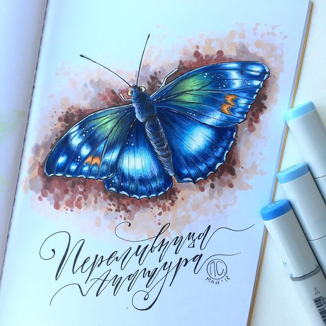 ![Скетчинг бабочка маркерами]()