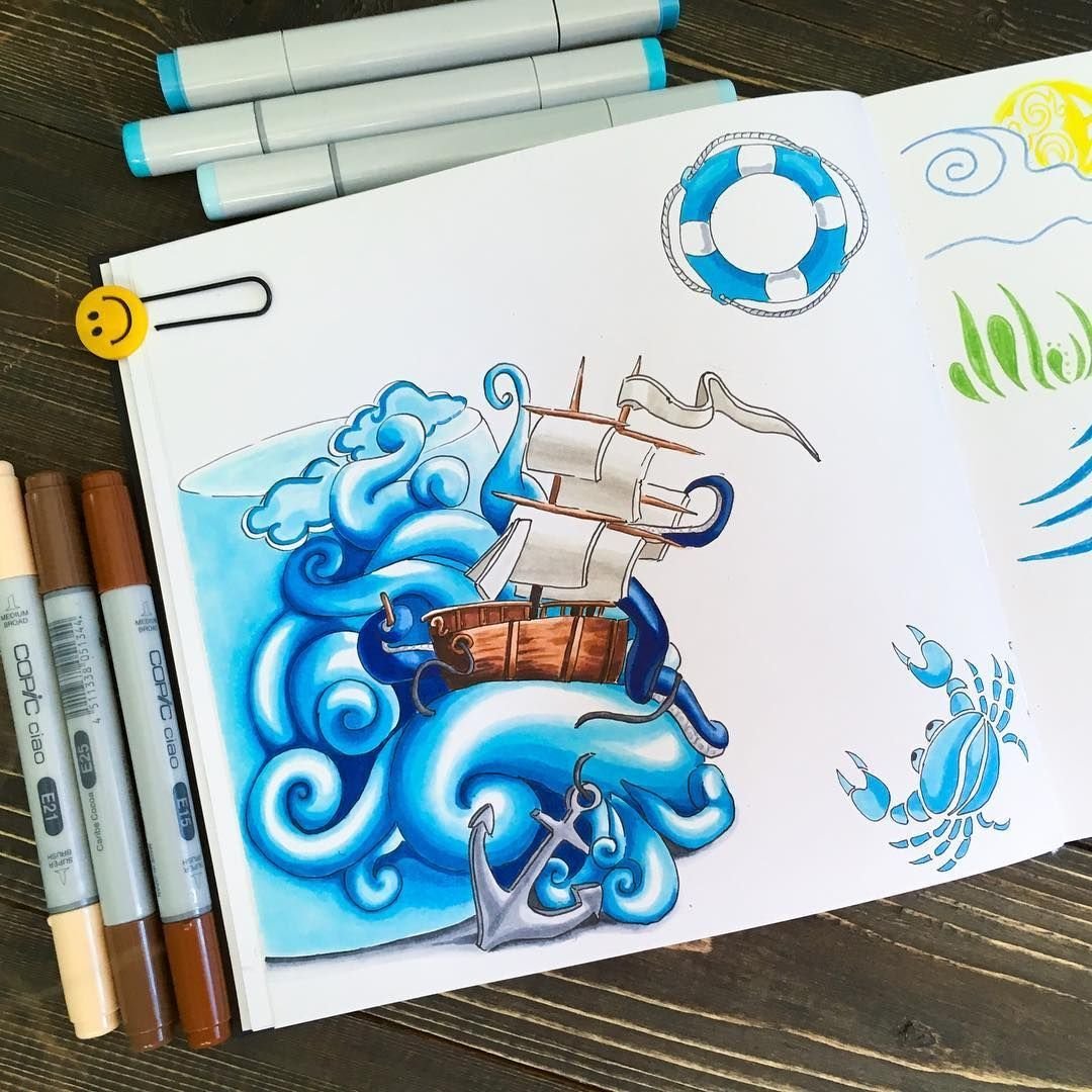 ![Рисунки маркерами в скетчбуке]()