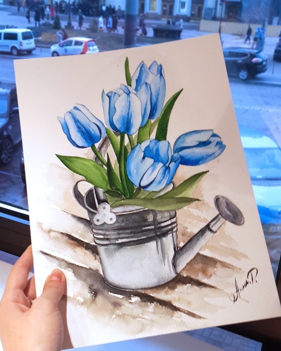 ![Рисование вазы акварелью]()