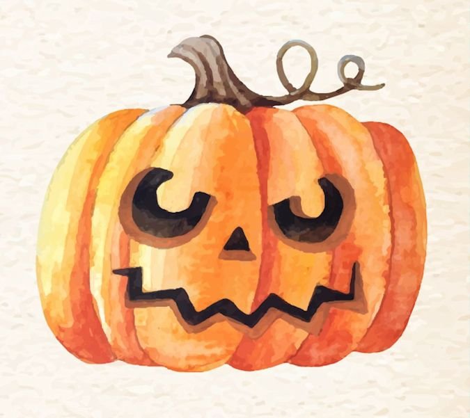 ![Хэллоуинская тыква акварелью]()