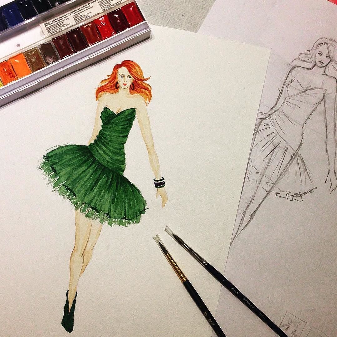 ![Художественный эскиз платья]()