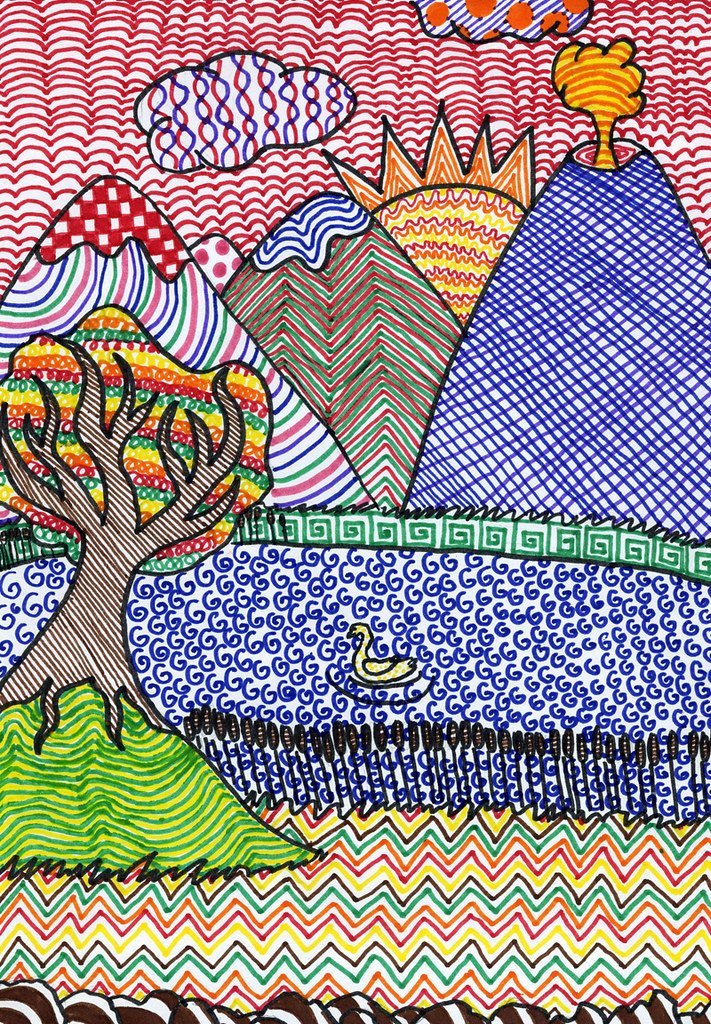 ![Пейзаж фломастерами]()