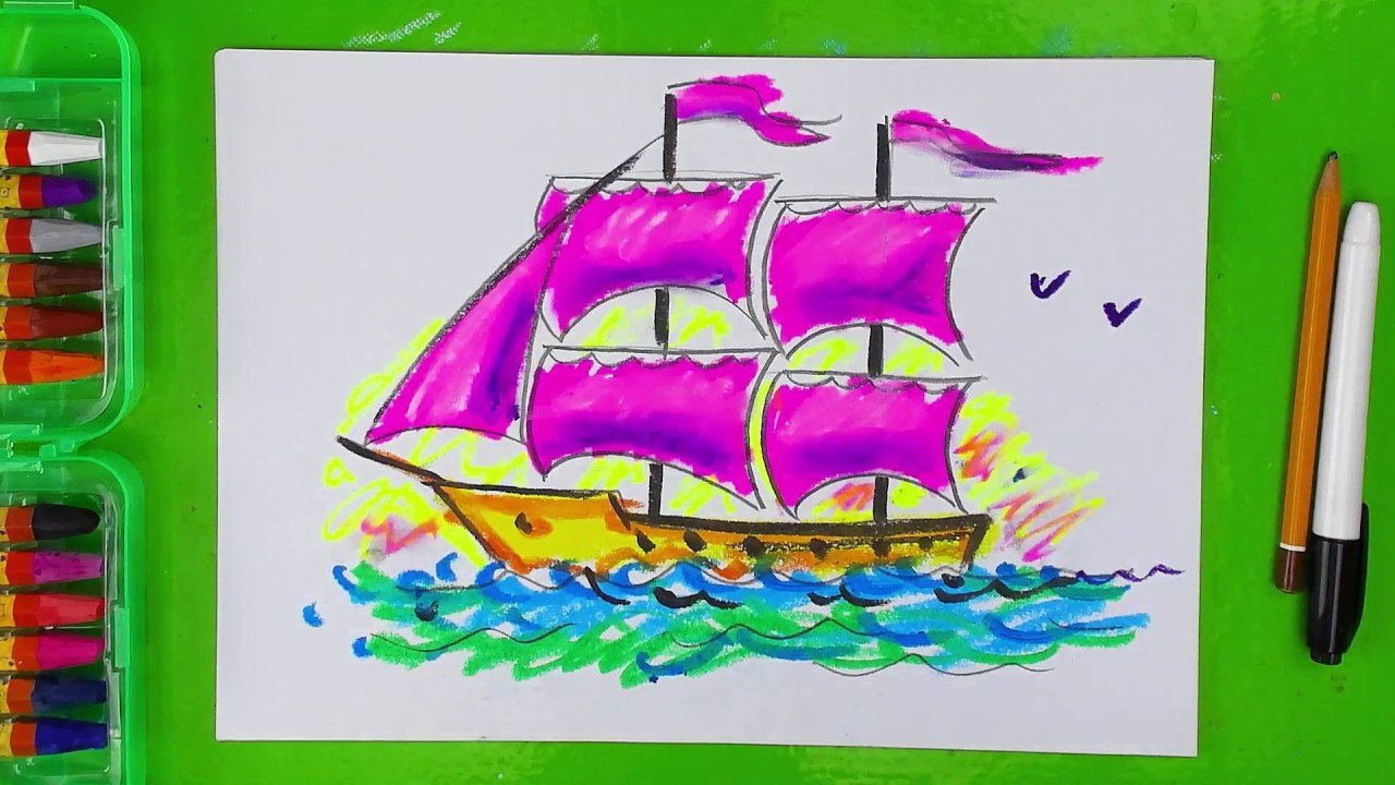 ![Корабль цветными карандашами]()
