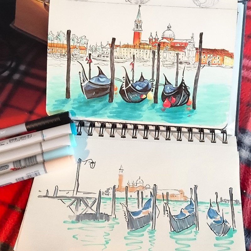 ![Морской скетч маркерами]()