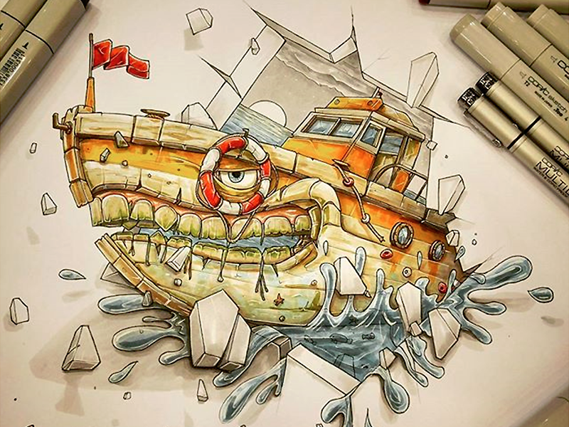 Скетчинг маркерами корабль