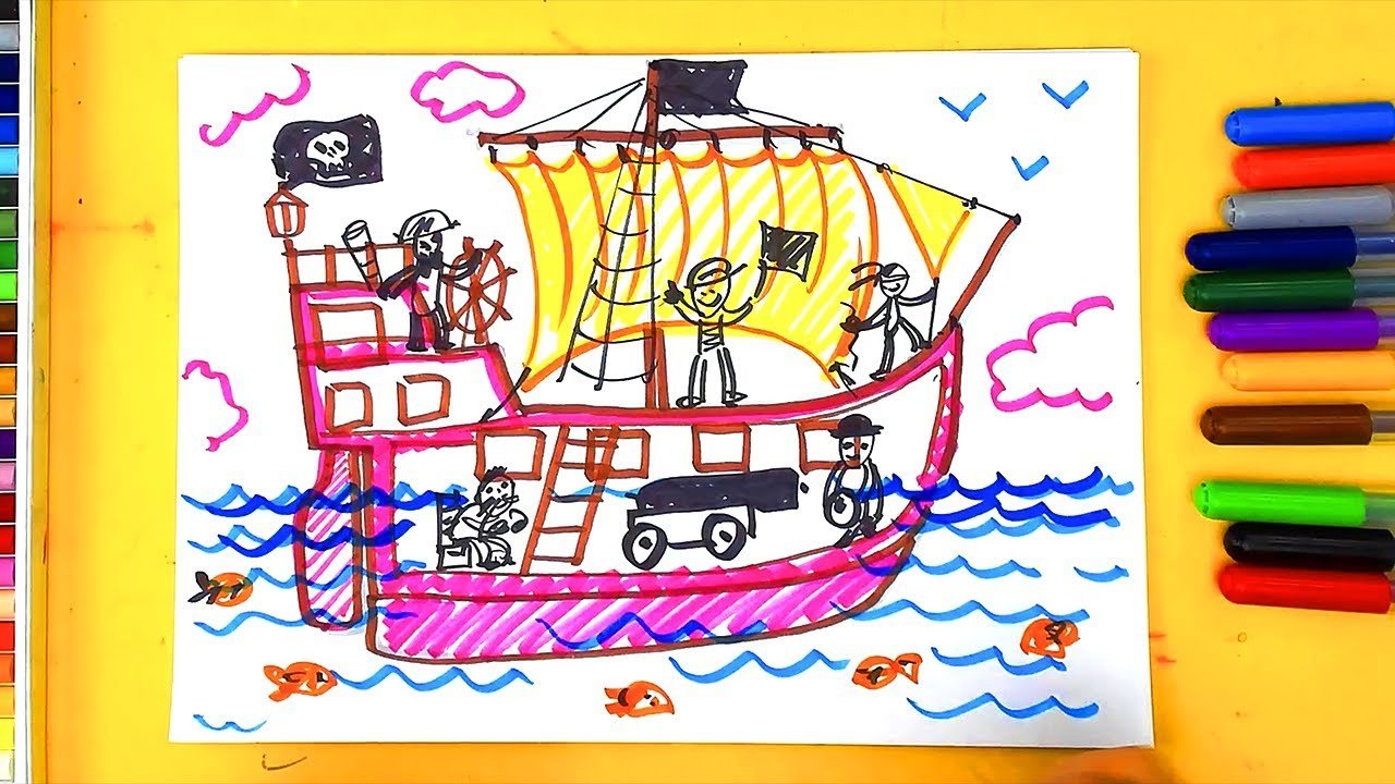 Корабль рисунок фломастерами