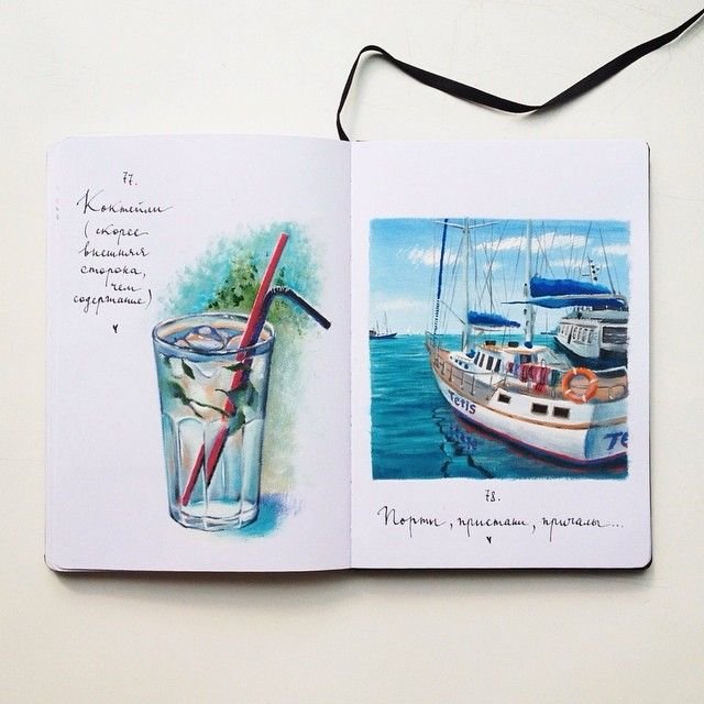 ![Акварельный скетчинг море]()