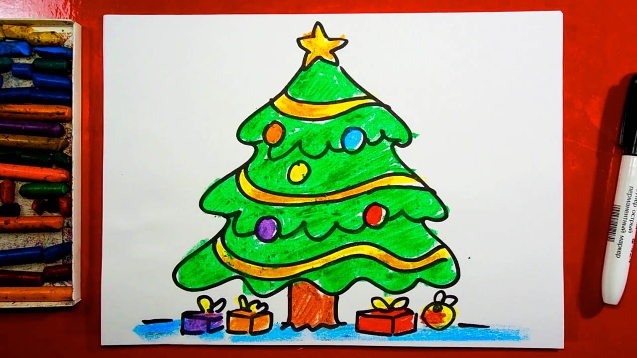 ![Рисование фломастерами для детей Новогодняя]()