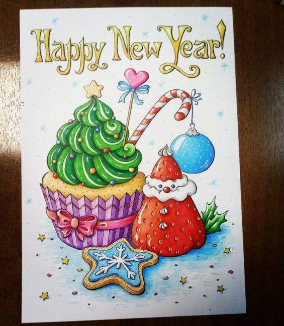 Новогодние открытки маркерами