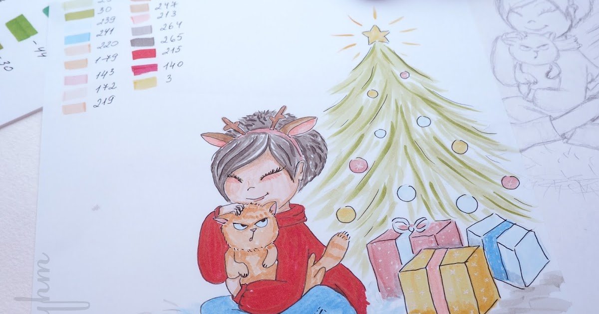 Новогодние иллюстрации маркерами