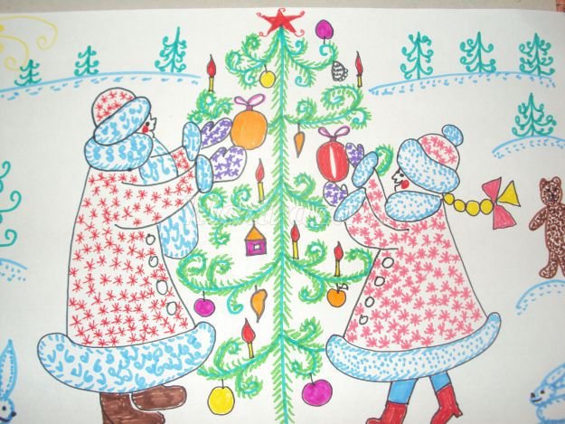 ![Новогоднее рисование фломастерами]()