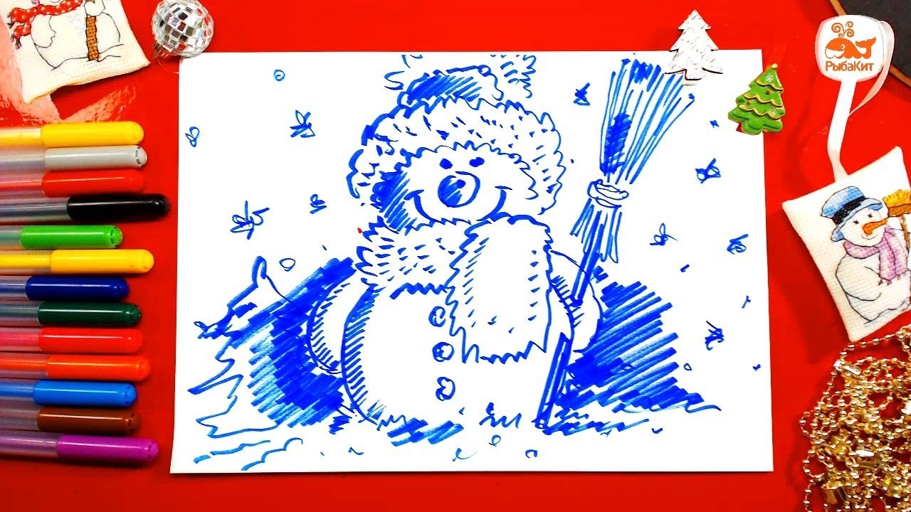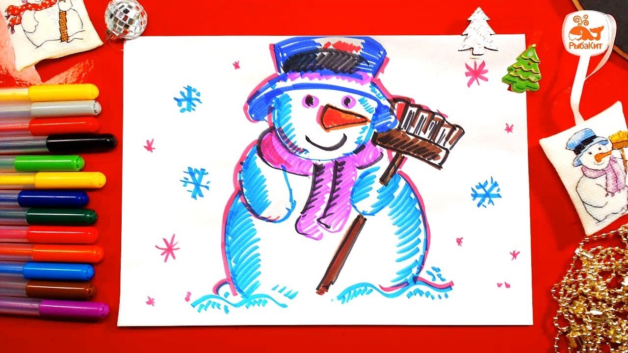 ![Рисование с детьми Снеговик]()