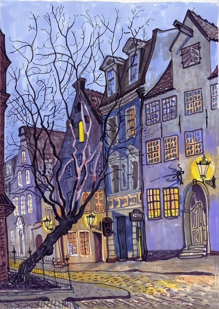 ![Рисование город вечером]()
