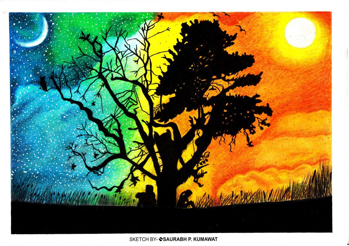 Пейзаж день и ночь рисунок