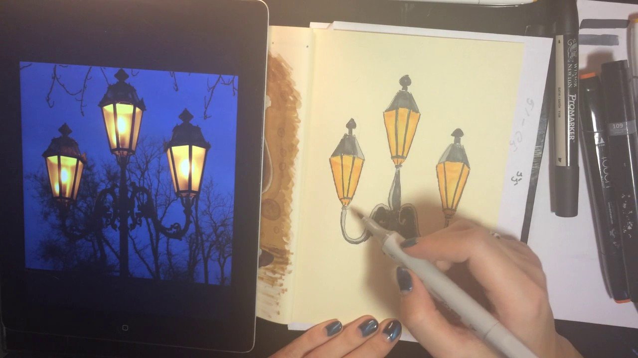 Уличный фонарь маркерами