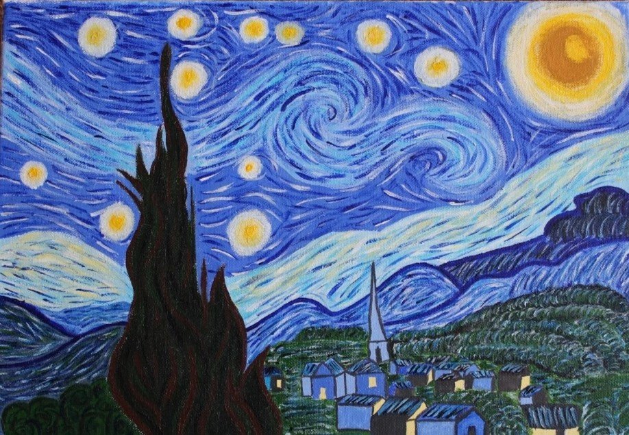Нарисовать звездную ночь Ван Гога