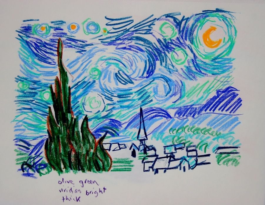 ![Звездная ночь Ван Гог рисунок]()