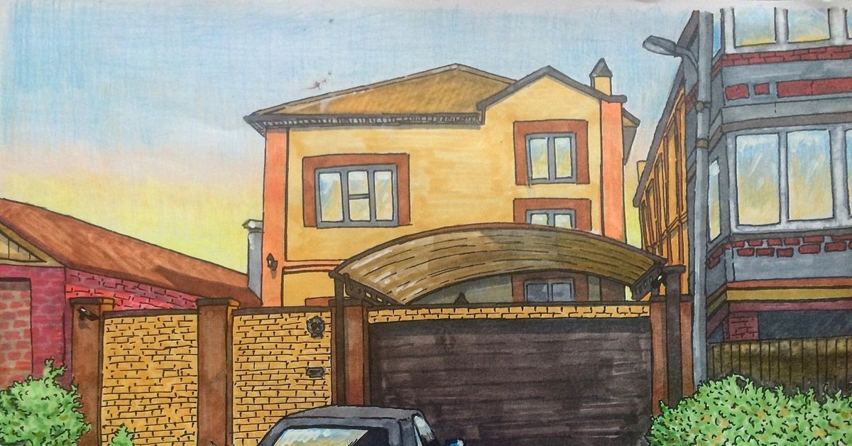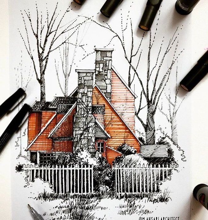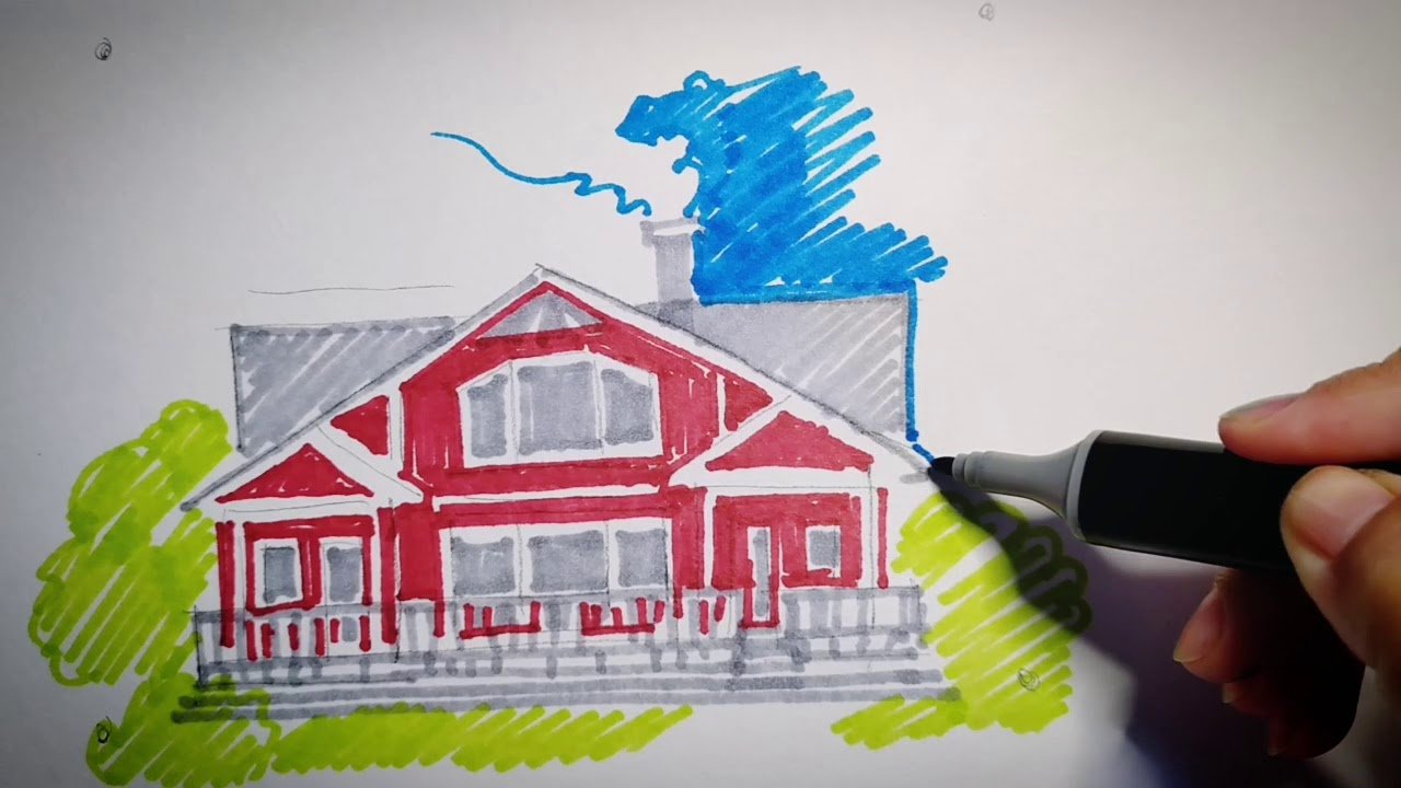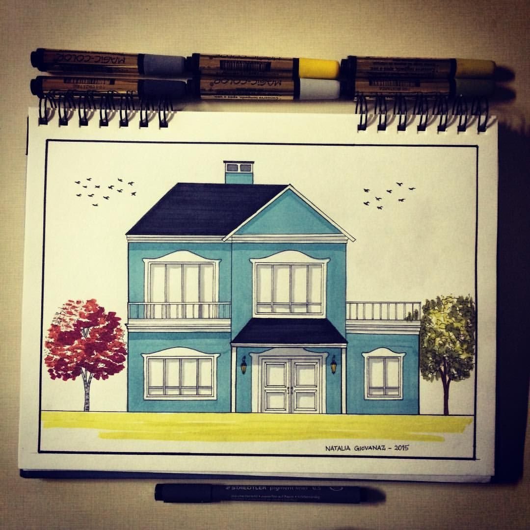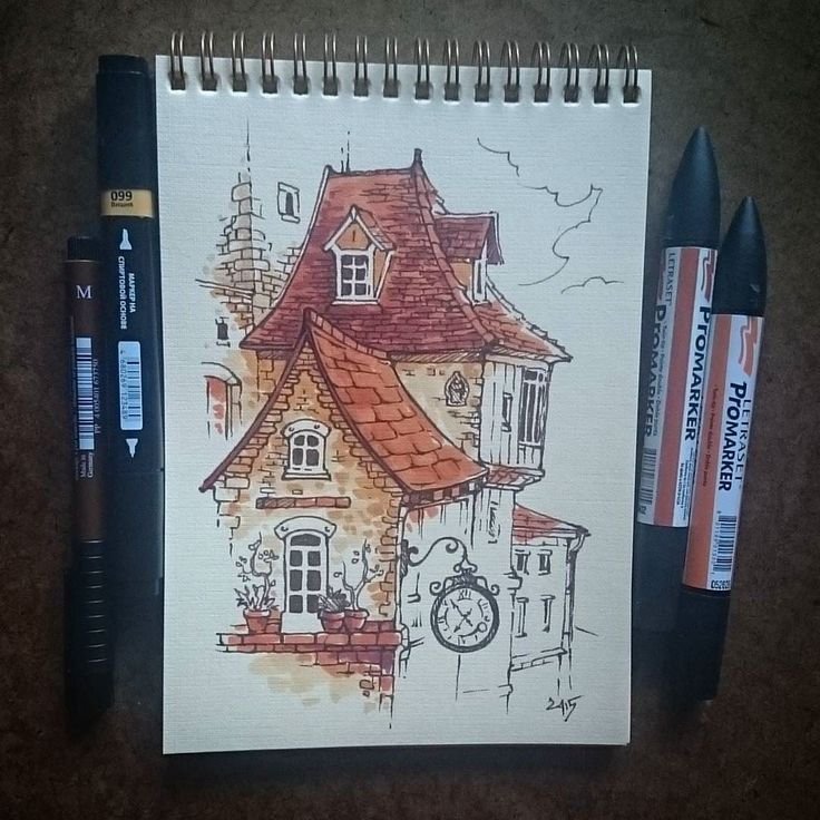 ![Домик скетч маркерами]()