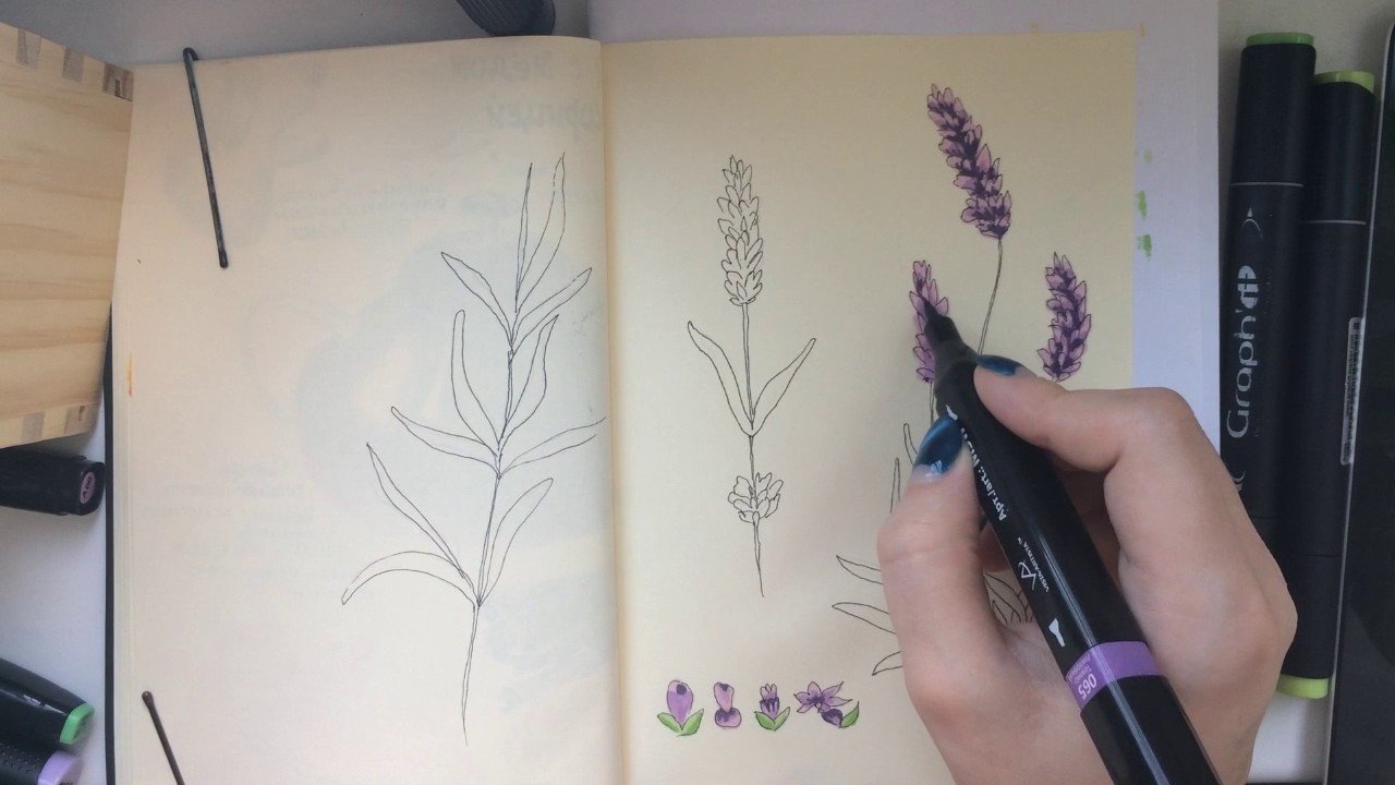 ![Скетчинг Лаванда маркерами]()