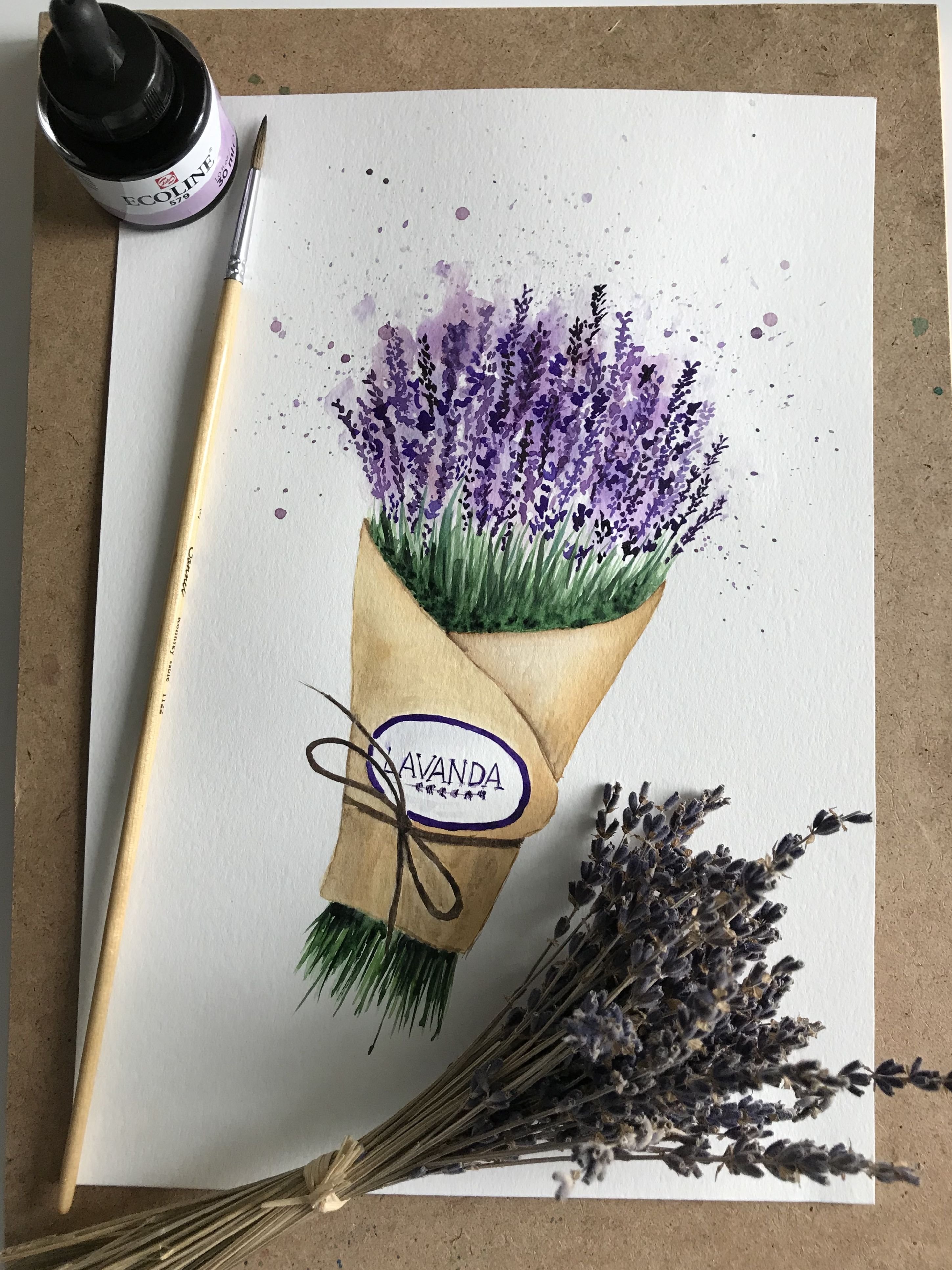 Лаванда скетч акварель