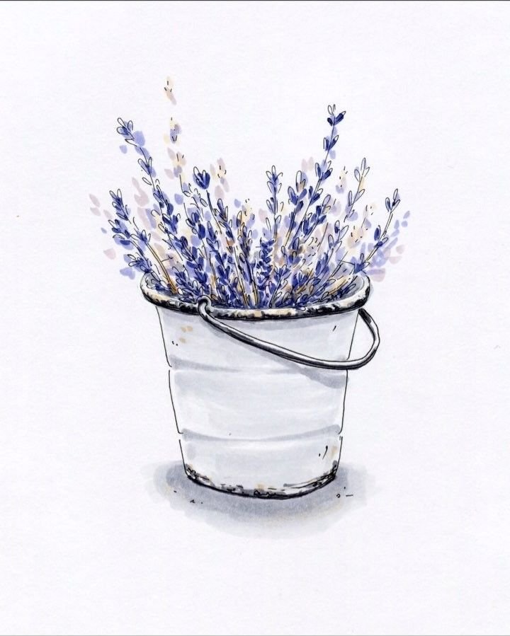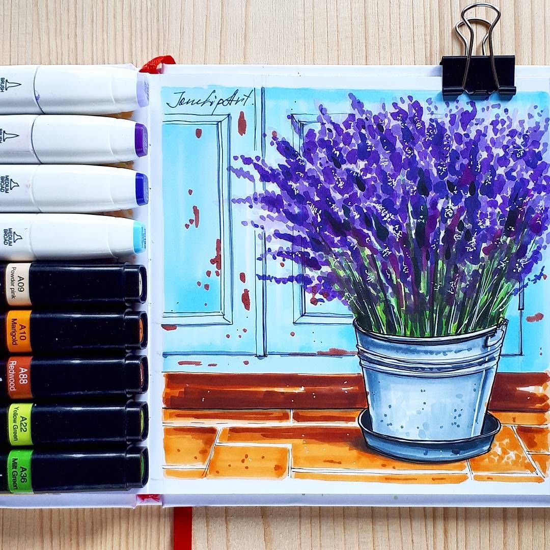 ![Красивые эскизы с лавандой акриловыми фломастерами]()