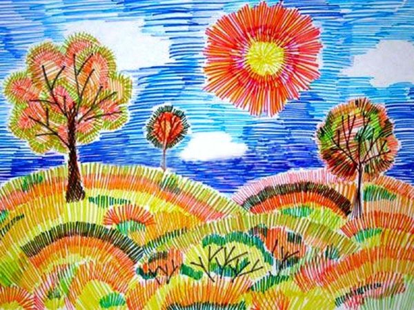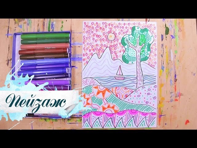![Урок рисования пейзаж фломастерами]()