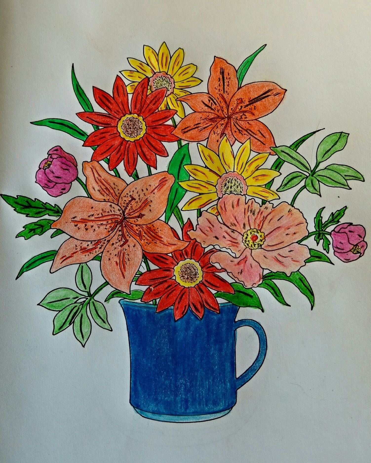 Замечательное искусство рисования букета цветов с использованием фломастеров открывает перед нами удивительный мир ярких и сочных оттенков. Каждый лепесток, каждый стебель нарисован с такой тщательностью и мастерством, что кажется, будто реальные цветы оживают на бумаге. Фломастеры позволяют создать невероятно насыщенные цвета, обеспечивая глубину и объемность картине. Благодаря своей простоте в использовании, они становятся незаменимым инструментом для творческих людей всех возрастов. Рисунок букета цветов фломастерами - это не только прекрасное хобби, но и способ выразить свои эмоции и чувства через язык цветов. Он может стать отличным подарком или декоративным элементом в интерьере, добавляя красоты и радости в нашу жизнь.