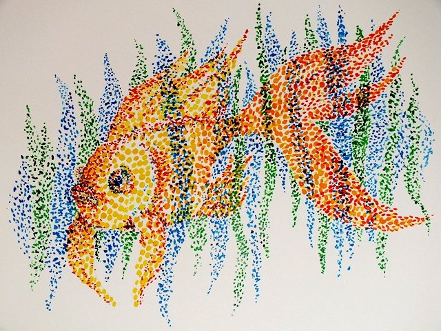 ![Пуантилизм морские обитатели]()