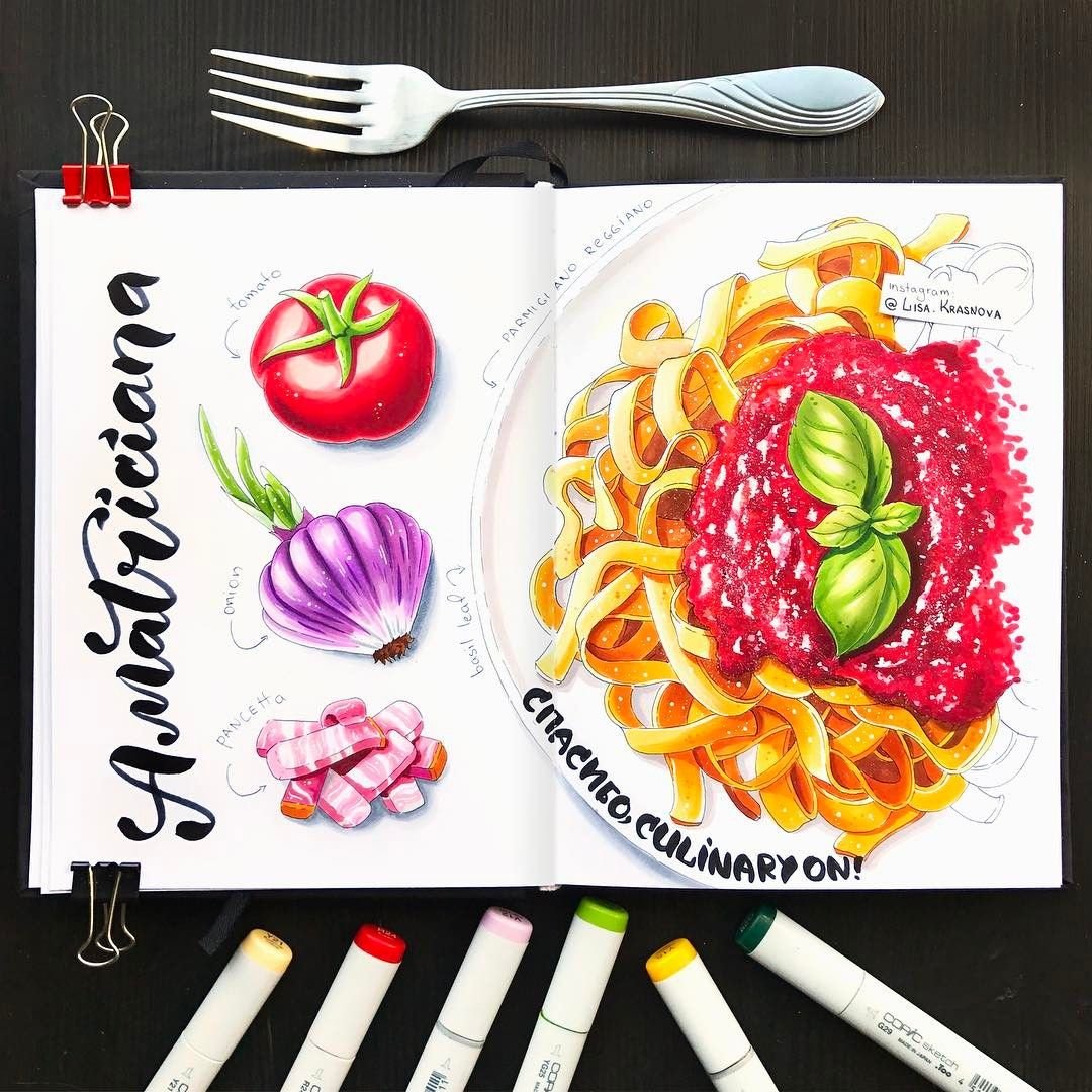 ![Скетчинг маркерами еда]()