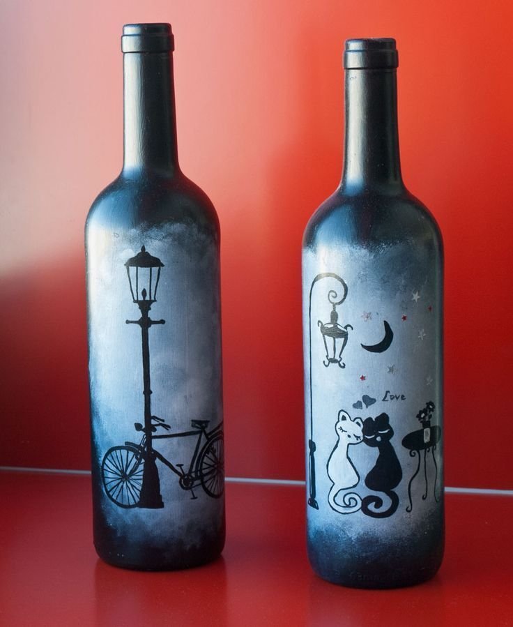 ![Декор бутылок акриловыми красками]()