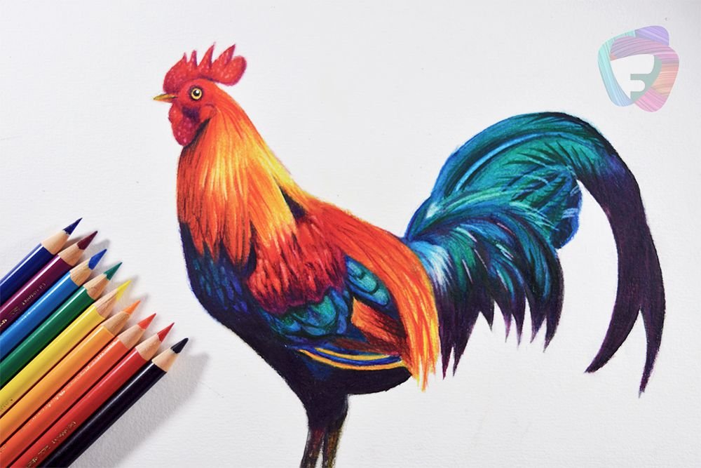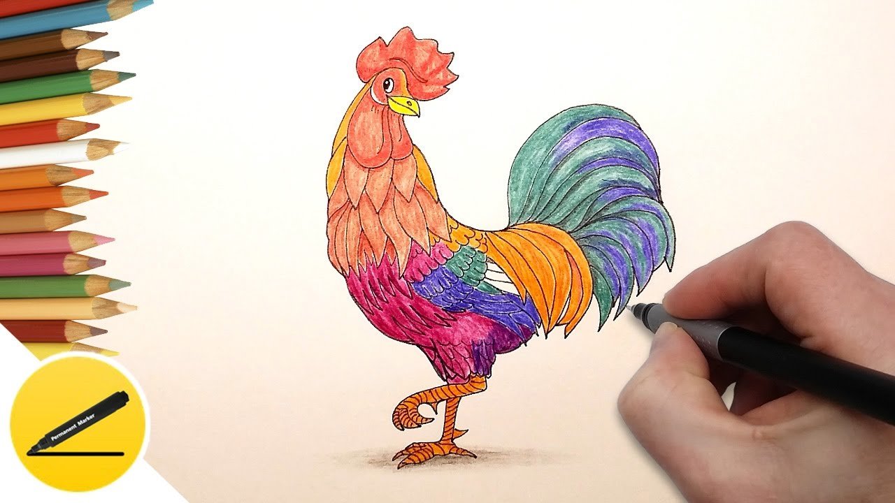 Петух рисунок карандашом цветной