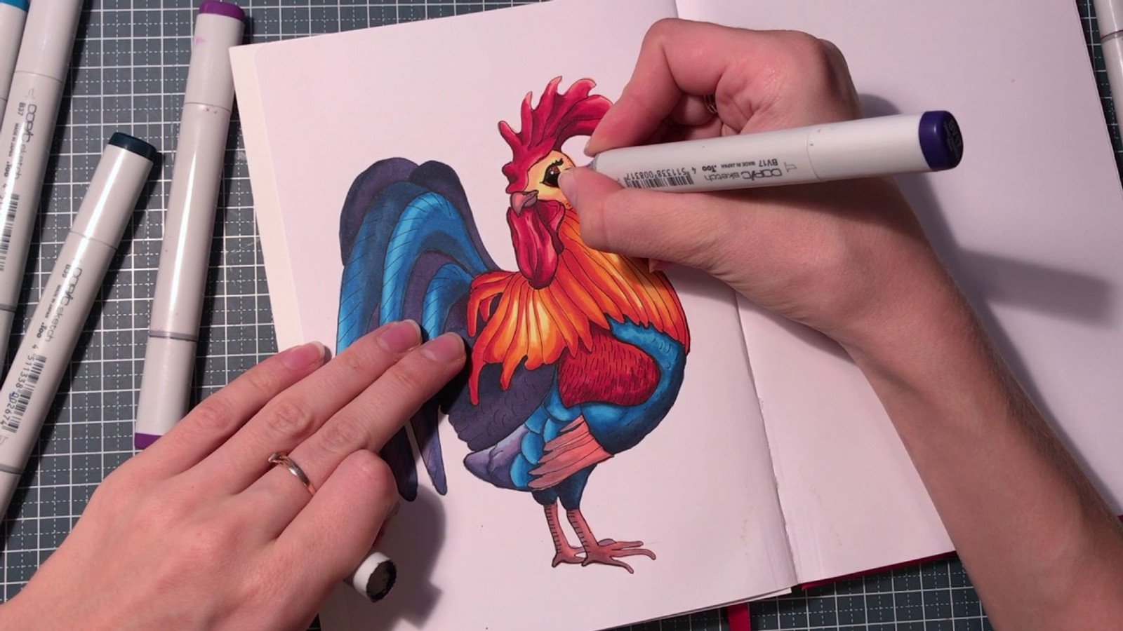 Петуха скетч маркерами