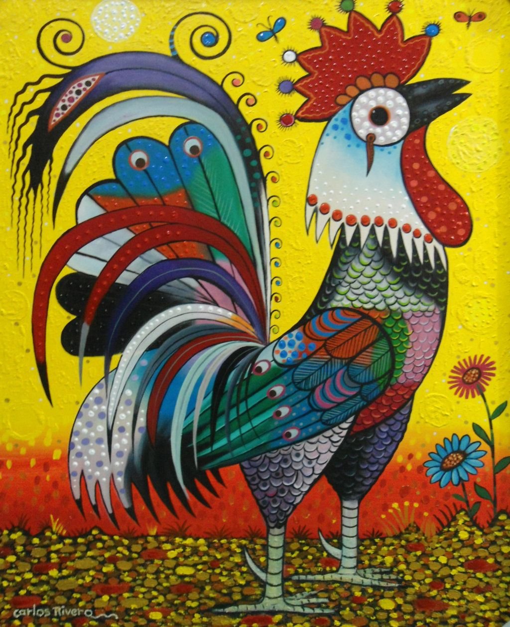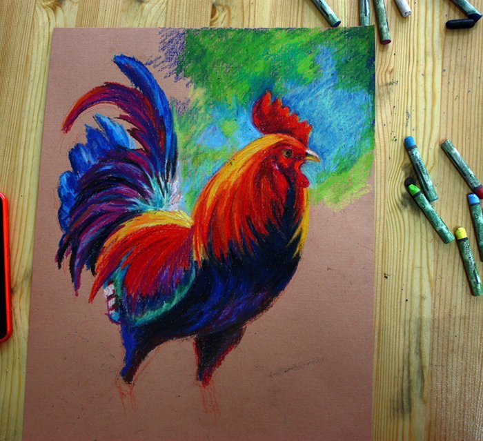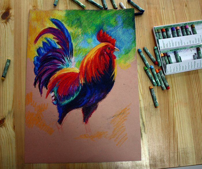 Петух пастелью