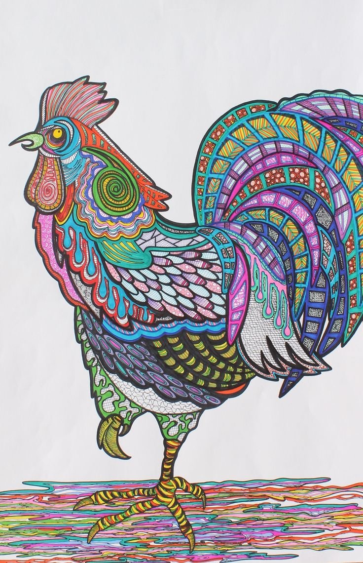![Петух маркерами]()