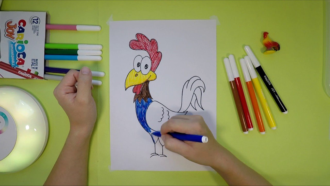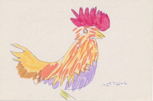 ![Петух фломастерами]()