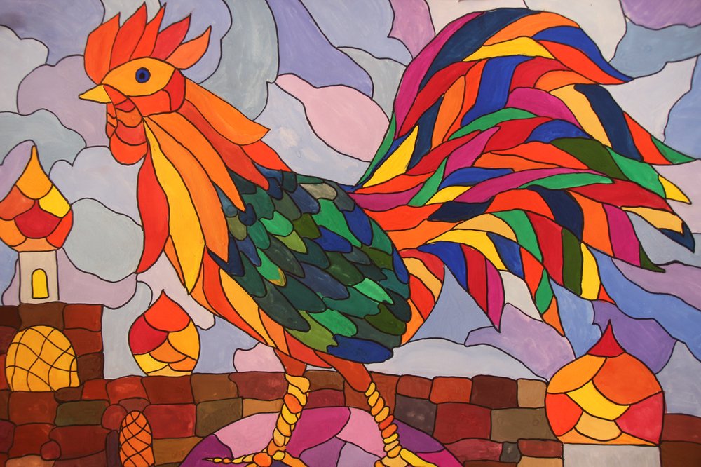 Петушок гуашью для детей