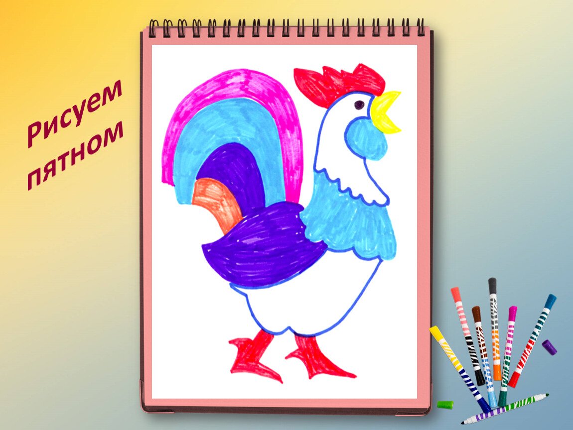 ![Рисуем фломастерами петуха]()