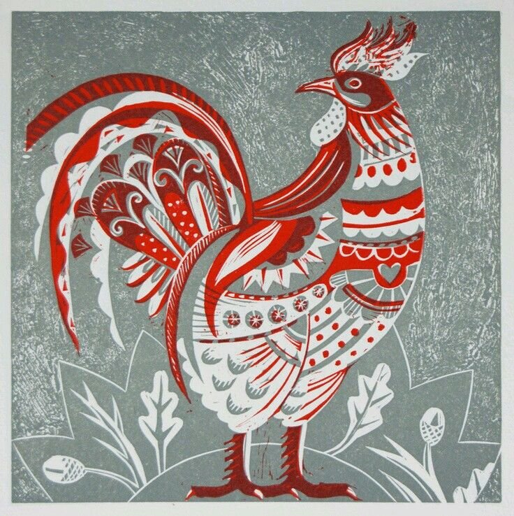 ![Стилизованные петухи]()