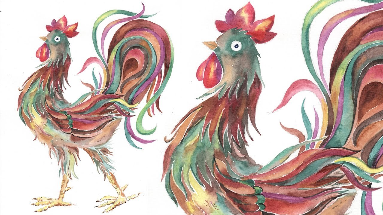 ![Петушок акварелью]()