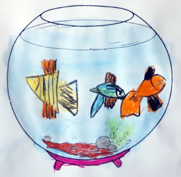 ![Аквариум с рыбками рисунок]()