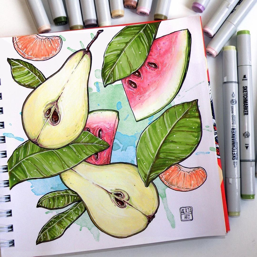Наша коллекция рисунков для скетчбука, выполненных фломастерами, предлагает удивительные изображения фруктов, которые превратят твои зарисовки в настоящие произведения искусства. Независимо от того, являешься ли ты начинающим художником или опытным мастером, эти яркие и сочные фруктовые композиции позволят тебе разнообразить свою работу и проявить свою творческую индивидуальность. От арбузов и груш до апельсинов и яблок, каждый рисунок выделяется своей детализацией и качеством, что поможет тебе создать живописное впечатление и порадовать своих зрителей. Так что возьми свои фломастеры и окунись в мир фруктовых фантазий с нашей коллекцией рисунков для скетчбука!