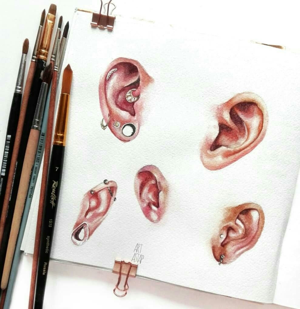 ![Ухо рисунок акварелью]()