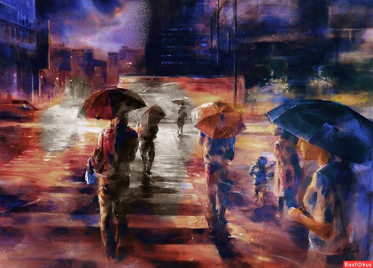 ![Под дождем живопись]()