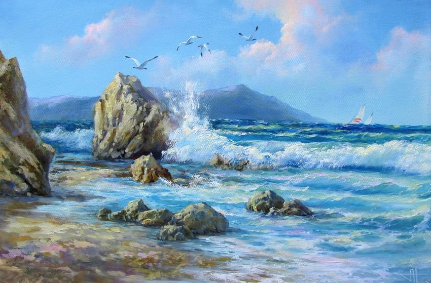 ![Морской пейзаж живопись маслом]()