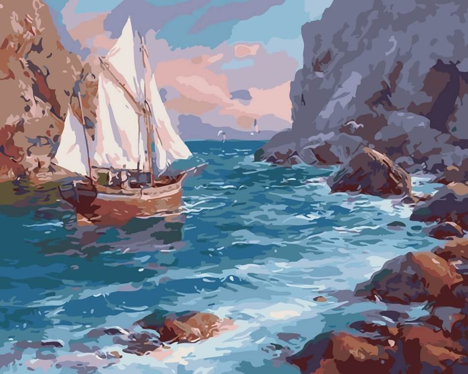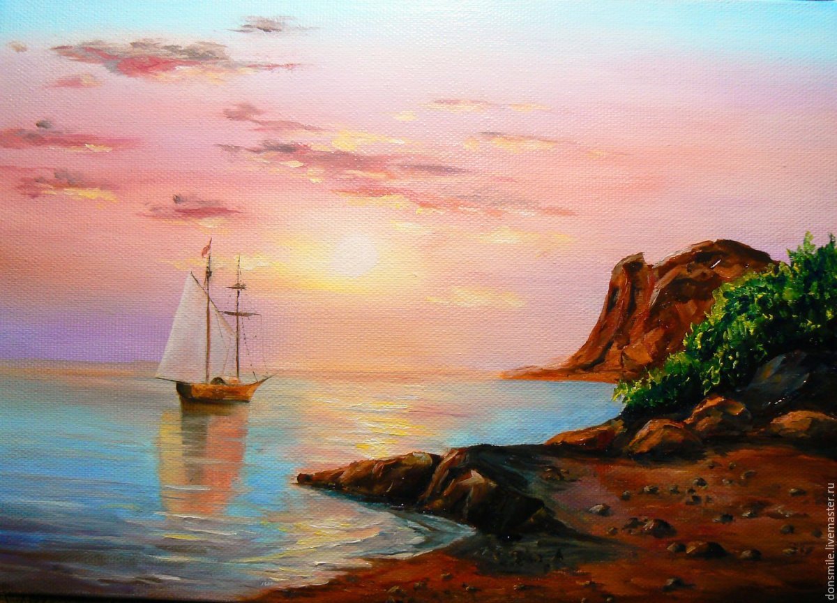 ![Море парусник маслом]()