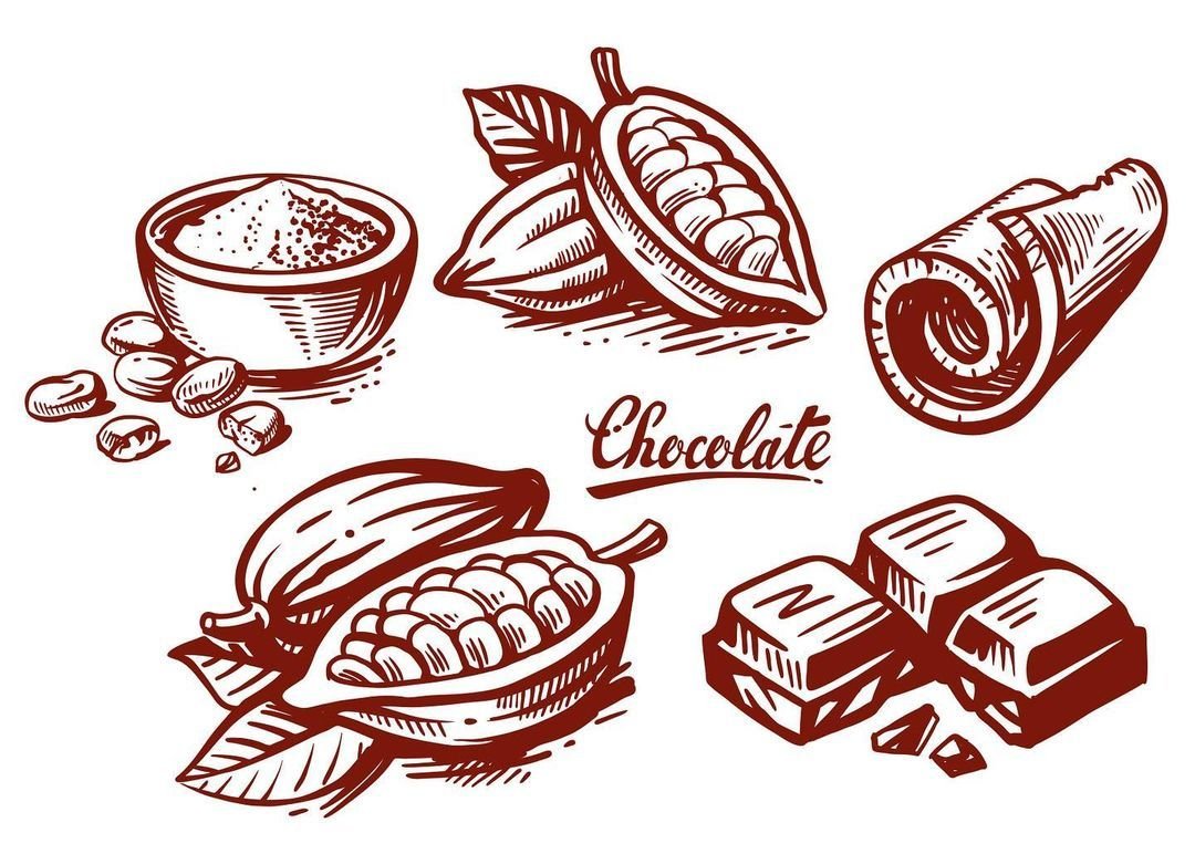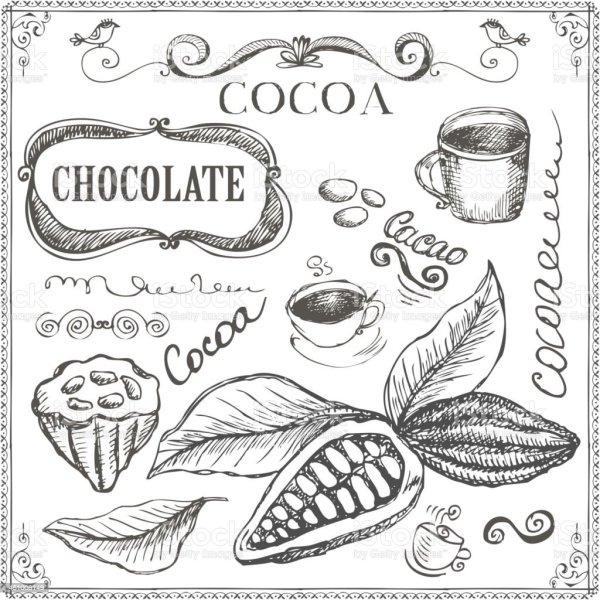 ![Какао Бобы и шоколад рисунок]()