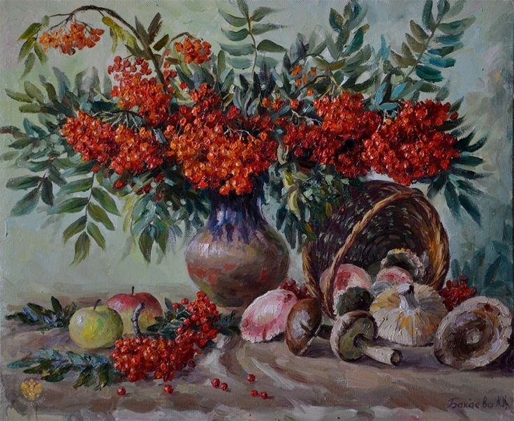 ![Натюрморт с калиной живопись]()